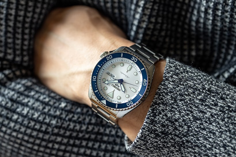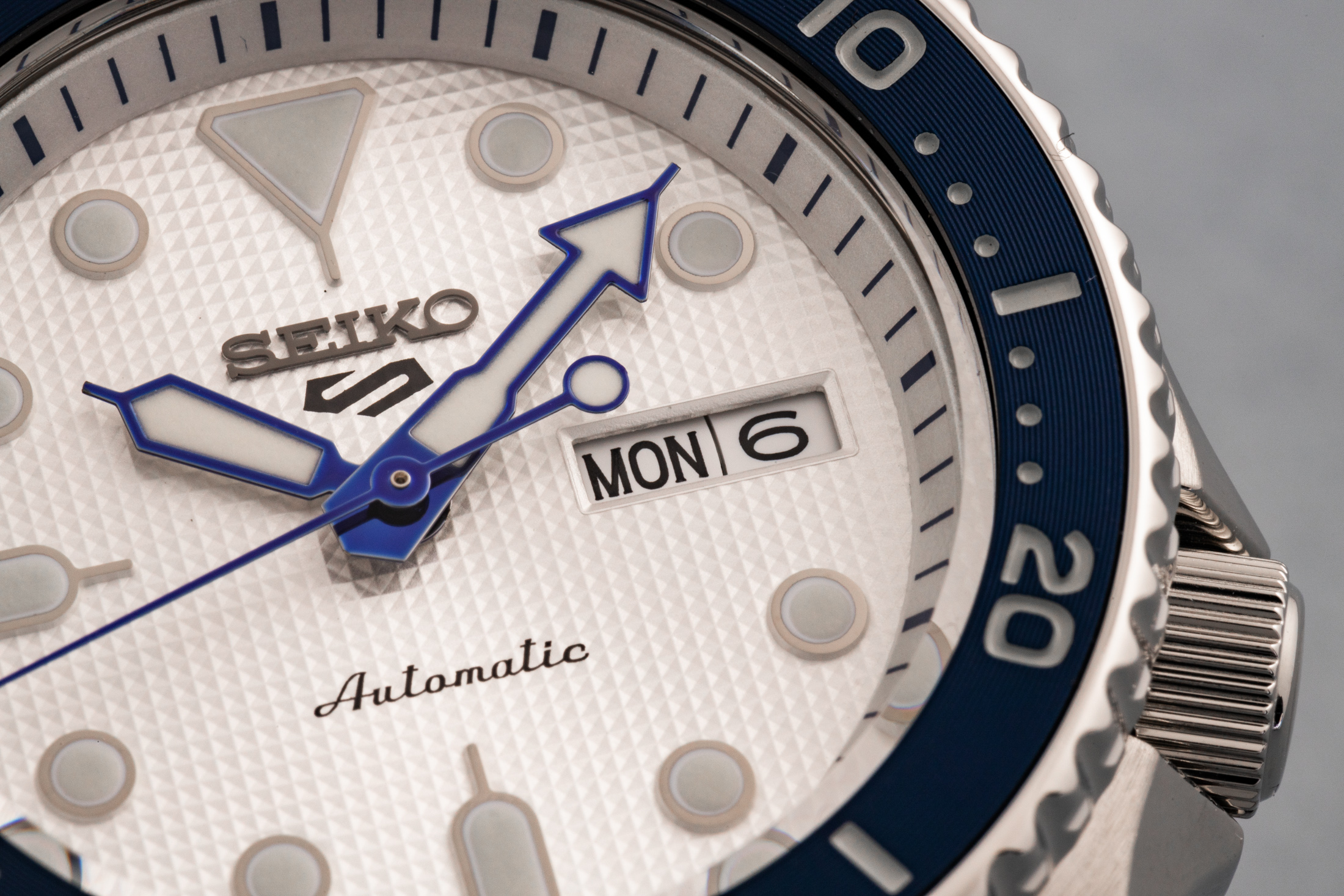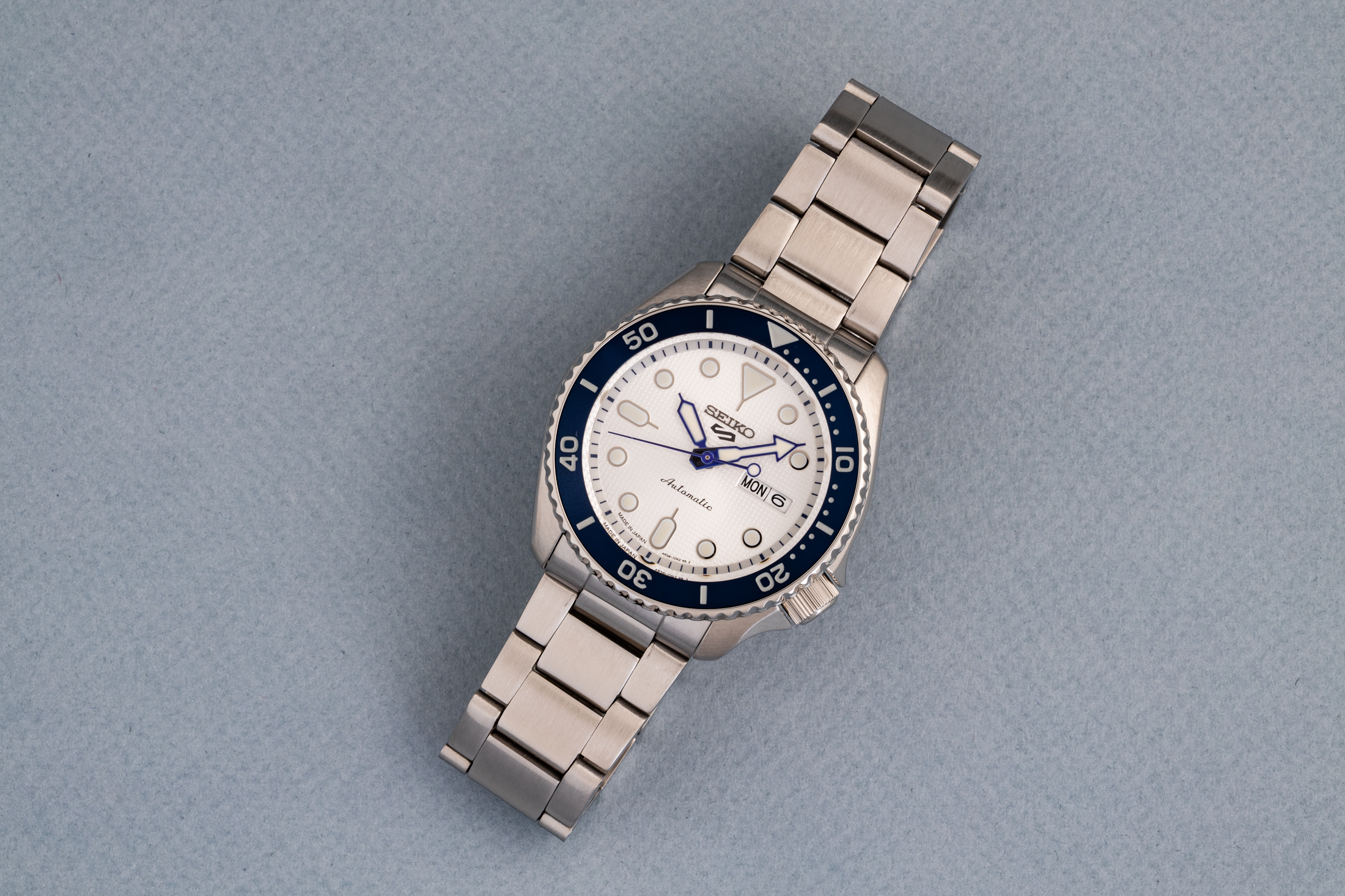 With a production limit that suggests you'll likely be able to get one, the question becomes – do you want one? I spent time with around a dozen Seiko 5 Sports SRPD models, and I feel they are best when they stick to the basics. I also think the bare steel case, blue bezel with a circular finish and engraved markings, and textured white dial look really good. As a somewhat more modernized SKX007, these new Seiko 5s have traded some legit diving credibility (this is why I said "diver-effect" above; 100 meters water resistance and no screw-down crown or lume pip on the bezel) in a play to become a more well-rounded everyday sporty Seiko.
